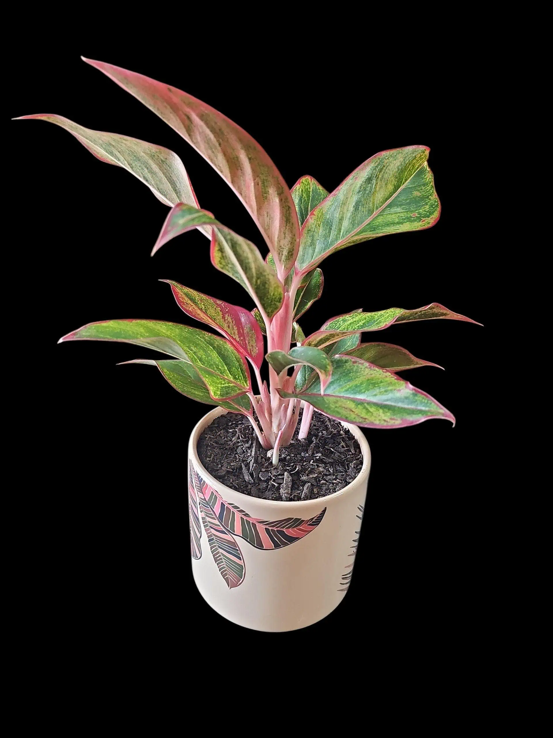 A popular aglaonema in a decorative pot with varying amounts of pink/red along the margins and veins. A fantastic indoor plant or understory plant in warm protected gardens. Prefers tropical or sub-tropical climates, or warm protected positions in temperate climate. Part shade/ shade. Prefers moist well drained soil. Typical height: 50cm