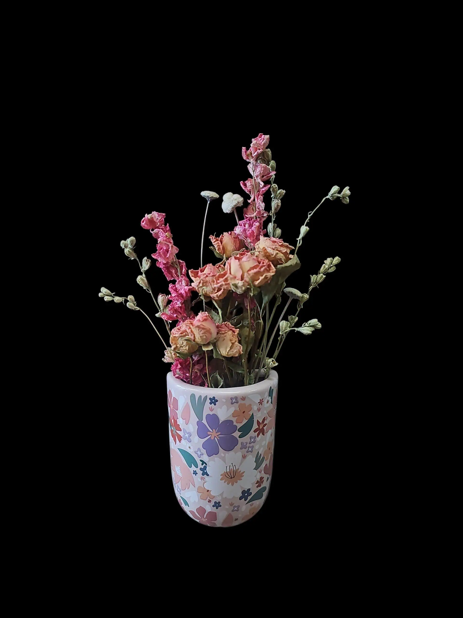 A sweet little dried and preserved arrangement designed to brighten up everyday spaces. Set in a charming floral vessel with a magnetic back, Fridge Bloom Babe attaches effortlessly to your fridge, filing cabinet or any metal surface. Featuring soft apricot roses, playful pinks and delicate textural stems, this long-lasting mini bloom is the perfect pop of joy for kitchens, offices or gift add-ons. No water, no fuss – just instant floral happiness.