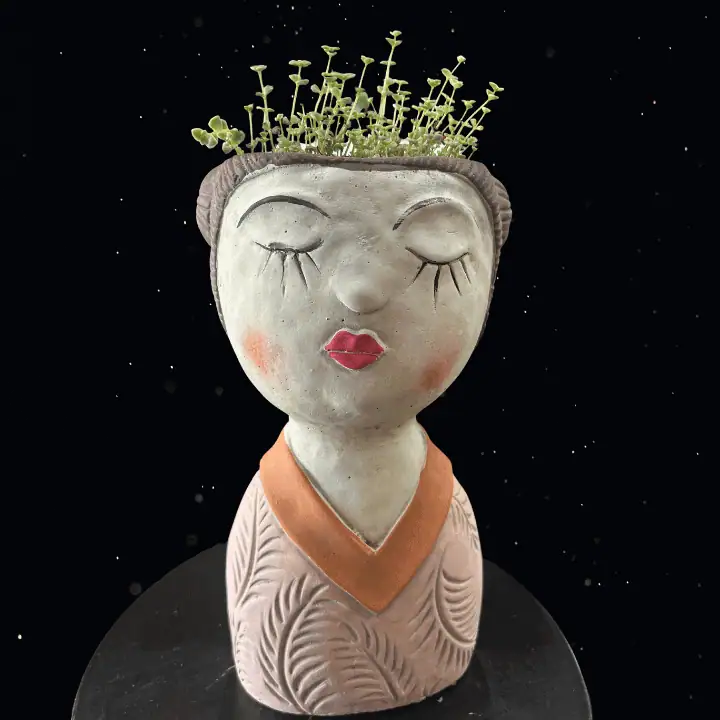 Hairloom Beauty is a gorgeous ceramic Geisha girl heavy planter with a soft wispy succulent which requires minimal care.