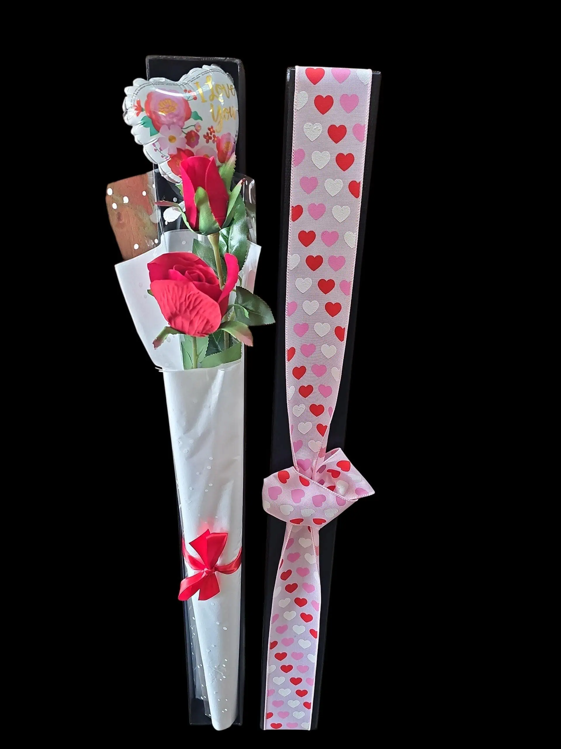 A sweet little Valentine surprise that says it all. Love in a Box features a realistic artificial red rose nestled neatly in a sleek presentation box, finished with a heart balloon saying i love you, for that extra pop of romance. Perfect for a lasting keepsake long after Valentine’s Day.