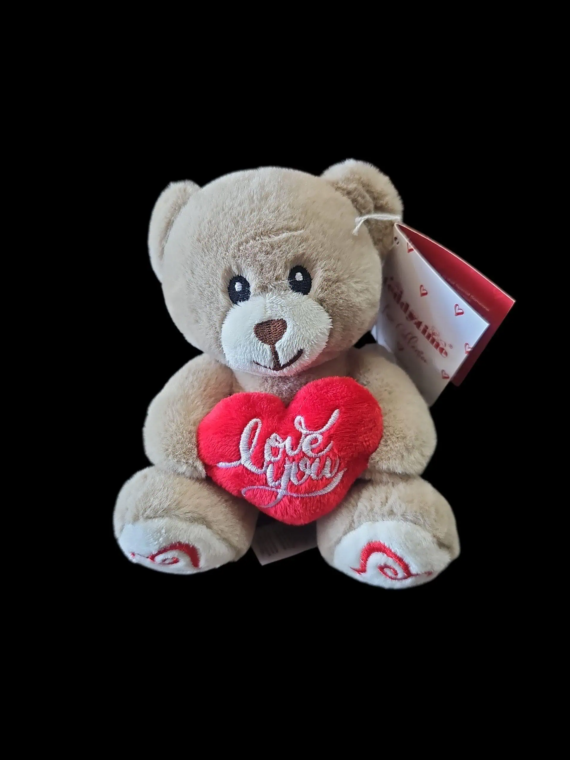 Soft, sweet, and full of love, this classic beige Valentine’s teddy is the perfect way to say I love you. Holding a plush red heart embroidered with Love You, it makes a beautiful keepsake and a thoughtful addition to flowers, chocolates, or a Valentine’s Day gift.