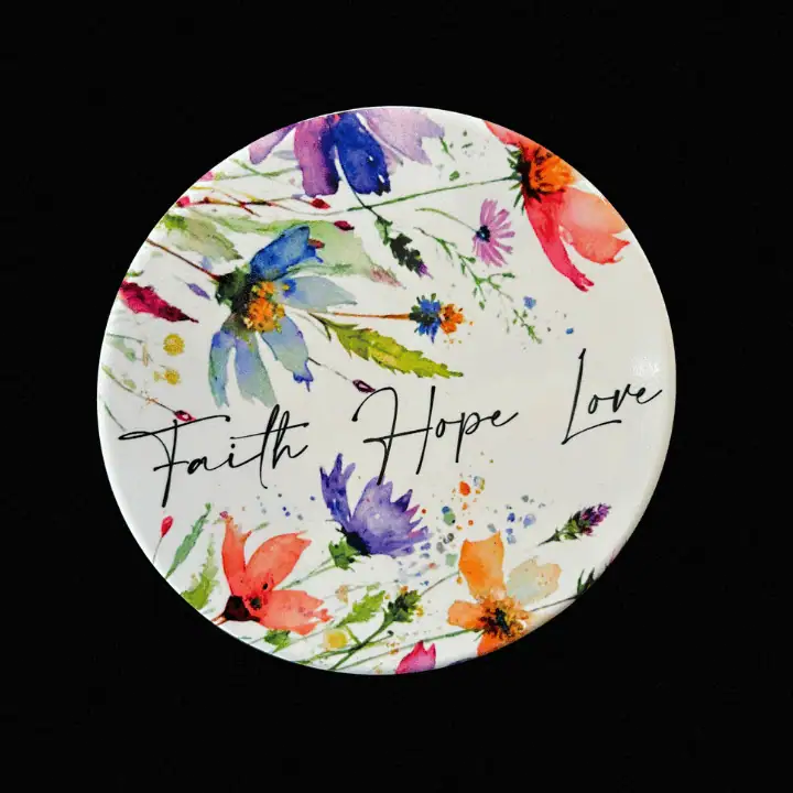Sprinkled with watercolor blooms and words that matter—this locally created ceramic cork backed tile will bring warmth, calm, and inspiration into any room.